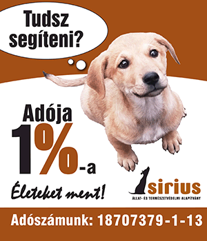 A Sirius Alapítvány évente több száz kutyának és sok macskának ad új esélyt az Életre. Adója egy százalékának felajánlásával Ön is segíthet, hogy folytatni tudjuk!