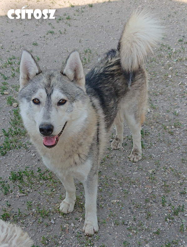 Tipikus husky, minden jó és makacs tulajdonságával. Nagyon félős volt a menhelyre kerülésekor, de rengeteg kitartó próbálkozás eredményeként már megfogható lett. Kedves, értelmes, általában jól kijön a többi kutyával. 2022. körül született kan, ivartalanítva lett.